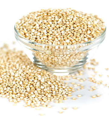 (*הקינואה מגיעה בשלושה צבעים – לבן, אדום ושחור. הקינואה הלבנה יוצאת רכה יותר בבישול בעוד הקינואה האדומה והשחורה בעלות מרקם קרנצ'י).